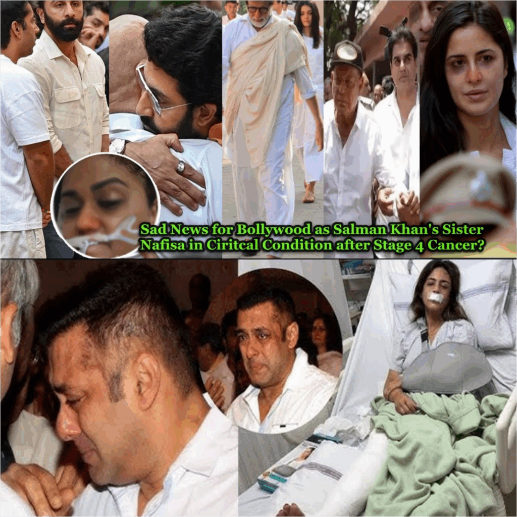 Bollywood is reeling from heartbreaking news as reports confirm that Salman Khan’s sister, Nafisa Khan, is in critical condition after being diagnosed with stage 4 cancer. The Khan family, one of the most influential and beloved in the Indian film industry, has always been in the public eye, but this latest development has cast a shadow of sadness over their lives. Fans, colleagues, and well-wishers from all over the world have expressed their concern and prayers for Nafisa’s recovery.
