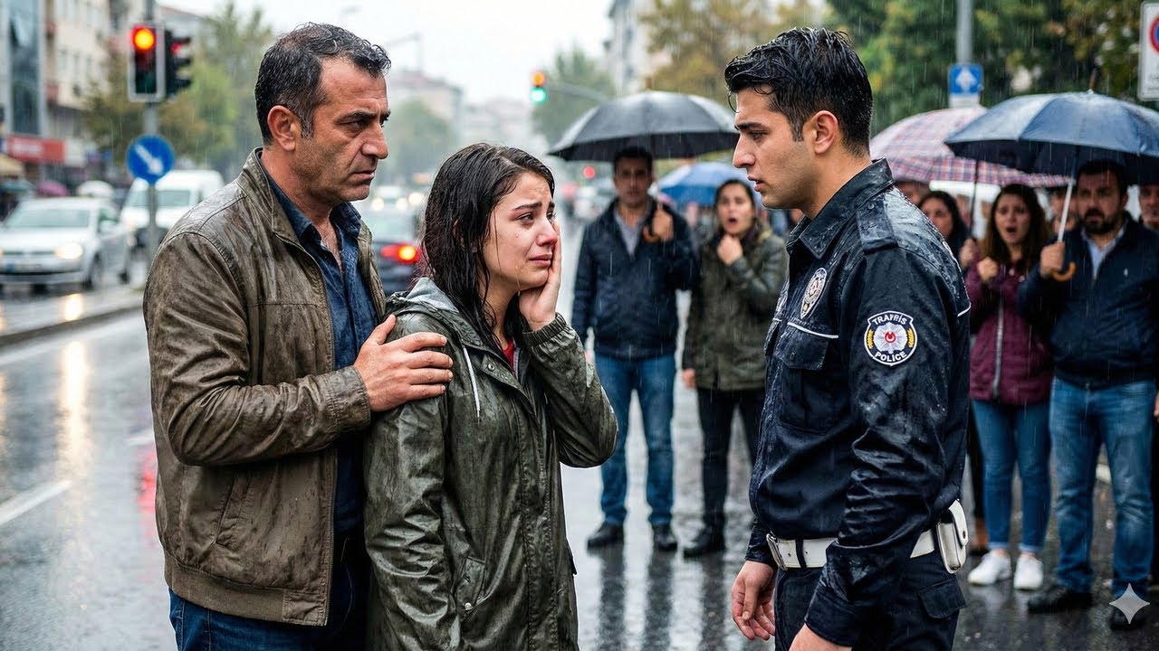 Yağmurun altında genç bir trafik polisi yaklaştı. Üniforması sırılsıklamdı. Yüzünde yorgunluk ve bastırılmış bir öfke vardı.
