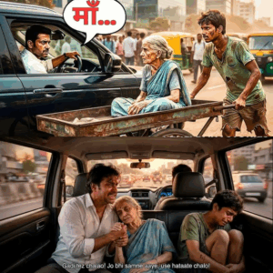 कुछ ही मिनटों में गाड़ी अस्पताल के इमरजेंसी गेट पर रुकी। विक्रम ने दरवाजा खोला और अपनी मां को गोद में उठाकर अंदर भागा, “डॉक्टर, कोई है, मेरी मदद करो!” उसकी चीख से पूरा हॉल गूंज उठा। सफेद कोट पहने डॉक्टर और नर्सें स्ट्रेचर लेकर दौड़े। अस्पताल की चकाचौंध, रोशनी, फिनाइल की तेज गंध और मशीनों की आवाज ने राजू को एक पल के लिए वहीं जड़ कर दिया। उसने आज तक ऐसा अस्पताल सिर्फ बाहर से देखा था। संगमरमर के फर्श पर अपनी गंदी चप्पलों के निशान पड़ते देख वह सहम गया।
