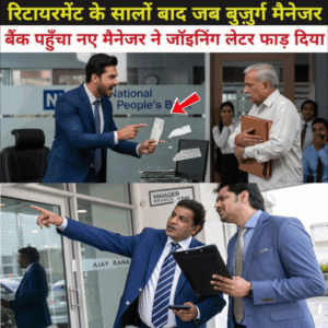 तभी दरवाज़े से एक तेज़ आवाज आई—“कौन है वहां? इतनी भीड़ में किसे रोके बैठे हो?” यह थे वर्तमान शाखा-प्रबंधक अजय राणा, उम्र लगभग पैंतीस। गले में टाई, चेहरे पर अहंकार की मोटी परत और तेज़ बोलने की आदत। रिसेप्शनिस्ट ने कहा, “सर, ये अंकल कह रहे हैं कि पहले यहां काम करते थे।” अजय ने हंसते हुए पलट कर देखा, “अच्छा, अब क्या चाहते हैं?” गोविंद जी ने फाइल खोली। उसमें पुराना जॉइनिंग लेटर, सर्विस रिकॉर्ड्स और बैंक के पुराने चेयरमैन की हस्ताक्षरित चिट्ठी थी। “बेटा, मेरे पेंशन खाते से जुड़ी एक प्रक्रिया अटकी है। पुराना रिकॉर्ड है, बस एक प्रमाणपत्र चाहिए।” अजय ने फाइल झपट ली, कागज़ पलटे, फिर बोला, “सरकारी कागज़ लाकर हमें सिखाने आए हैं कि बैंक कैसे चलता है?” गोविंद जी शांत स्वर में बोले, “नहीं बेटा, सिखाने नहीं—समझाने आया हूं कि गलती कहां हुई थी।” अजय ठहाका लगाकर बोला, “जानते हो मैं कौन हूं? मैं इस शाखा का हेड हूं। आप जैसे रिटायर लोग अब सिस्टम में फिट नहीं होते। ये कागज़ अब किसी काम के नहीं।” उसने बेपरवाही से गोविंद जी का जॉइनिंग लेटर उठाया और दो टुकड़े कर दिए। पूरा कमरा सन्नाटे में डूब गया।