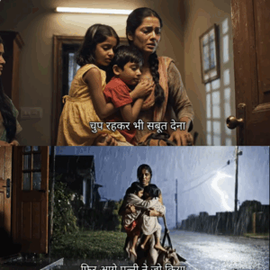 रात के सन्नाटे में जब हवाएं चीख रही थीं और आसमान से बरसती बूंदें ज़मीन पर गिरते ही दर्द की आवाज़ कर रही थीं, मीरा अपनी दो छोटी बेटियों को सीने से लगाए घर के बाहर खड़ी थी। पति विवेक के शब्द उसके कानों में हथौड़े की तरह गूंज रहे थे —