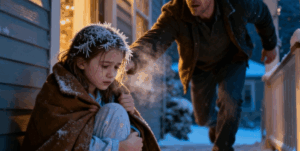 There, on the porch, Emily sat curled up on the concrete steps. Her knees were pressed against her chest, her thin pajama sleeves dusted with frost. The temperature was barely 1.7°C—the kind of cold that numbs your fingers to stone.