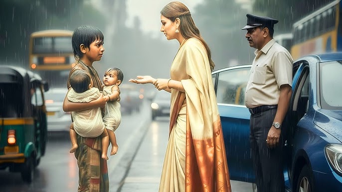 मुंबई की व्यस्त सड़कें हमेशा कहानियों से भरी रहती हैं, लेकिन उस दिन एक ऐसी घटना घटी जिसने हर देखने वाले को भावुक कर दिया। सुबह की हल्की धूप में, एक अमीर महिला – साक्षी मेहरा, जो एक सफल बिजनेसवुमन और दो जुड़वां बच्चों की मां थीं – अपनी कार से ऑफिस जा रही थीं। ट्रैफिक सिग्नल पर उनकी नजर एक छोटे लड़के पर पड़ी, जो अपने दो जुड़वां भाई-बहनों के साथ फुटपाथ पर बैठा भीख मांग रहा था। बच्चों के चेहरे पर धूल, आंखों में भूख और मासूमियत थी। उनकी हालत देख साक्षी का दिल पसीज गया।