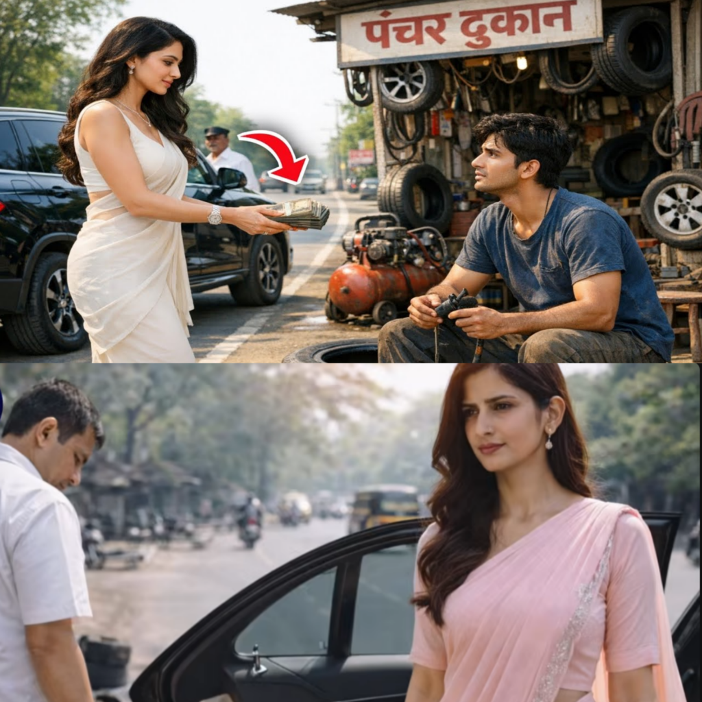एक दोपहर, जब सूरज आग उगल रहा था, एक चमचमाती काली लग्जरी कार राघव की दुकान के सामने रुकी। कार का टायर पंक्चर था। उस कार के पिछले हिस्से में बैठी थी अनन्या चौधरी। अनन्या, जो अपने पति की मृत्यु के बाद अकेले ही ‘चौधरी ग्रुप ऑफ इंडस्ट्रीज’ को संभाल रही थी। वह शांत थी, गंभीर थी, और दुनिया की फरेब भरी नजरों से थक चुकी थी।