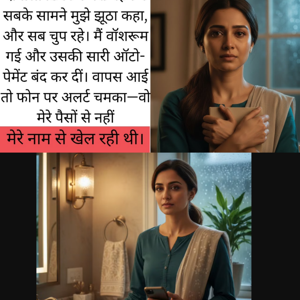 “स्काइला, ईशान ने हमें सब बताया। पर क्या इसे घर में हल नहीं किया जा सकता?” पापा ने कांपती आवाज़ में पूछा। “पापा, घर में हल करने का वक्त तब था जब उसने पहली बार झूठ बोला था। अब मेरे नाम पर बैंक के नोटिस आ रहे हैं,” स्काइला ने मेज पर कानूनी नोटिस पटकते हुए कहा।