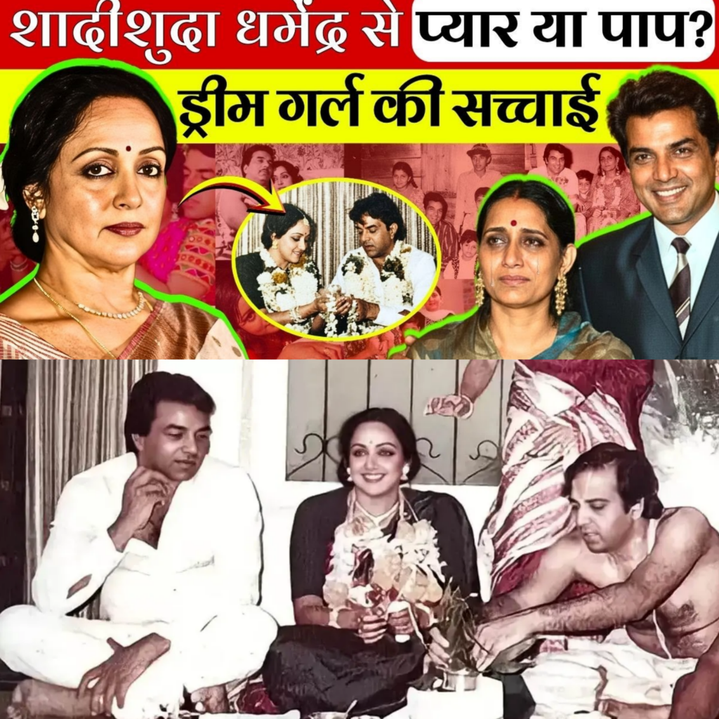 हेमा मालिनी के करियर का सबसे बड़ा मोड़ तब आया जब उनकी मुलाकात ‘ही-मैन’ धर्मेंद्र से हुई। 1970 में फिल्म ‘तुम हसीन मैं जवान’ के सेट पर शुरू हुई यह मुलाकात जल्द ही एक बेपनाह मोहब्बत में बदल गई। लेकिन यह प्यार कांटों भरा था। धर्मेंद्र पहले से शादीशुदा थे और उनके दो बेटे (सनी और बॉबी देओल) थे।