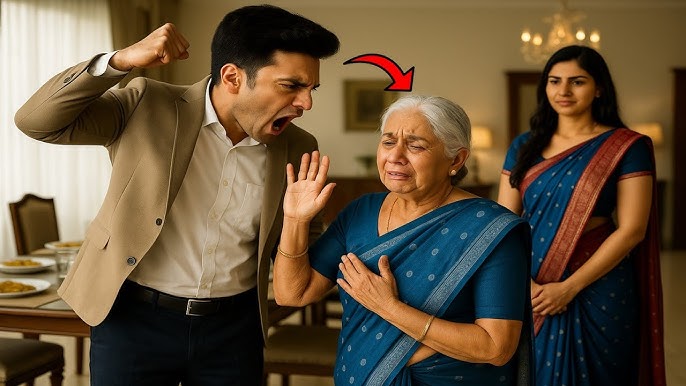 शाम को अजय ऑफिस से लौटा। सोनिया ने अजय से शिकायत की कि मां ने उसकी बेइज्जती की है। अजय गुस्से में मां के कमरे में गया और मां पर हाथ उठा दिया। “आगे से सोनिया के खिलाफ कुछ भी कहने से पहले इस थप्पड़ को याद रखना!” जानकी देवी की आत्मा तक कांप गई। उन्होंने टूटे स्वर में कहा, “मां पर हाथ उठाने वाला बेटा कभी सुखी नहीं रहता। एक दिन तुम्हें पछताना पड़ेगा।”