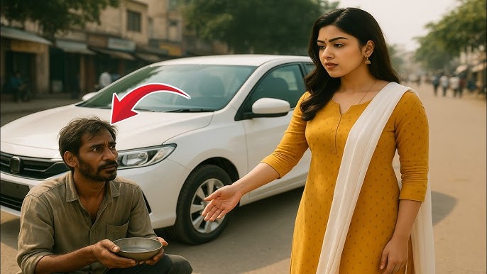 एक दिन, भीड़ में एक चमचमाती कार आकर रुकी। उसमें से उतरी मीरा—साधारण सलवार-कुर्ता, चेहरे पर गंभीरता और आंखों में अपनापन। मीरा सीधे सिद्धार्थ के पास गई और बोली, “भीख से पेट तो भर सकता है, लेकिन इज्जत नहीं मिलती। अगर सच में बदलना चाहते हो तो मेरे साथ चलो। मैं तुम्हें ऐसा काम दूंगी जिसमें मेहनत भी होगी और इज्जत भी।” भीड़ सन्नाटे में थी। सिद्धार्थ के दिल में डर और उम्मीद दोनों थी। उसने कांपते कदमों से कार में बैठने का फैसला किया।