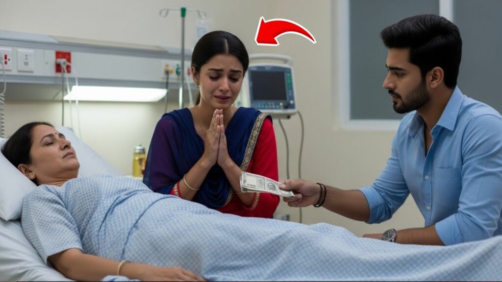 अगले दिन डॉक्टर ने साफ कहा—आज एडवांस जमा करो, वरना इलाज रोकना पड़ेगा। आराध्या टूट चुकी थी। तभी अस्पताल के बाहर एक महंगी कार रुकी। उसमें से निकला विक्रम—एक अमीर आदमी। उसने आराध्या की आँखों में दर्द देखा और पूछा, “अगर मैं तुम्हारी माँ के इलाज के लिए 15 लाख दूँ, तो क्या तुम मेरे साथ चलोगी?”
