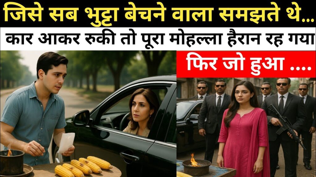 कुछ दिनों बाद वही काली गाड़ी मेरे ठेले के सामने रुकी। इस बार शीशा नीचे हुआ, अंदर एक महिला बैठी थी। उसने कहा, “यह भुट्टों के पैसे नहीं, एक ऑफर है। ठेला छोड़ दो और मेरे साथ चलो, ज़िंदगी बदल जाएगी।” मैंने हां कर दी। गाड़ी एक बड़े बंगले के सामने रुकी। अंदर वही छोटी बच्ची भागती आई और मेरे पैरों से लिपट गई। “मेरे हीरो पापा आ गए!” उसकी मां अनामिका ने बताया कि उसके पति की मौत के बाद सिया को एक सहारे की जरूरत थी। सिया मुझे हीरो पापा मानती थी।