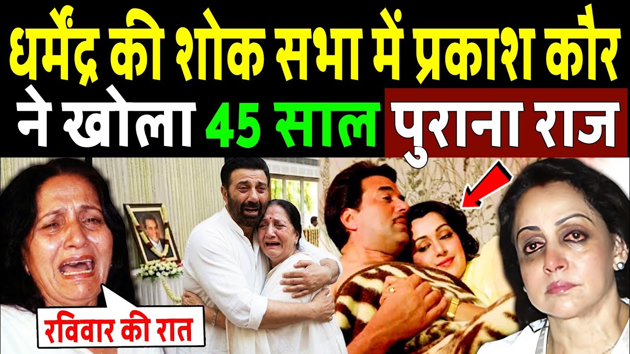 धर्मेंद्र की शोक सभा में पहली पत्नी प्रकाश कौर का 45 साल पुराना फैसला आज भी कायम था। यह सिर्फ एक महिला का फैसला नहीं था, बल्कि एक पूरे परिवार की इज्जत, आत्मसम्मान और दर्द की कहानी थी। बॉलीवुड की इस अनकही कहानी ने एक बार फिर साबित किया कि रिश्तों के घाव समय के साथ नहीं भरते। यह कहानी हमेशा याद रहेगी—एक औरत की मजबूती, दूसरी औरत की खामोशी और एक आदमी की उलझी हुई जिंदगी।