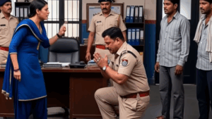 सीमा ने अपनी साधारण लड़की वाली पहचान बनाए रखते हुए धीरे से कहा, “साहब, अगर ये लोग सच कह रहे हैं तो बेवजह इन्हें मत मारिए।” रघुवीर ने तिरछी भौंहें उठाकर उसे घूरा और कहा, “ओए, तू बीच में बोलने वाली कौन है? यहां पुलिस का मामला चल रहा है। निकल जा, वरना तुझे भी अंदर कर दूंगा।” सीमा ने धीमे स्वर में कहा, “मैं सिर्फ इतना कह रही हूं कि इंसाफ बिना सुने मत कीजिए।” रघुवीर का गुस्सा सातवें आसमान पर पहुंच गया। उसने अपनी कुर्सी धक्का देकर उठाई और सीमा के पास आकर एक जोरदार थप्पड़ उसके गाल पर जड़ दिया।