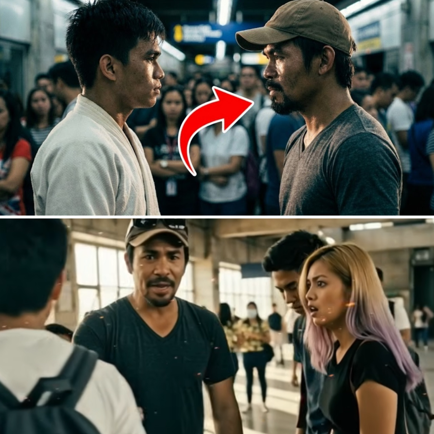 Sa araw-araw na takbo ng buhay sa Metro Manila, bihira ang sandaling humihinto ang oras. Ngunit sa isang hindi inaasahang pangyayari sa loob ng isang abalang istasyon ng tren, isang simpleng komento ang naging simula ng isang eksenang hindi malilimutan ng mga nakasaksi—isang sandaling nagdala ng tensyon, hiya, at isang aral na mabilis na kumalat sa buong bansa. At sa gitna ng lahat, tahimik na naroon ang isang alamat: Manny Pacquiao.