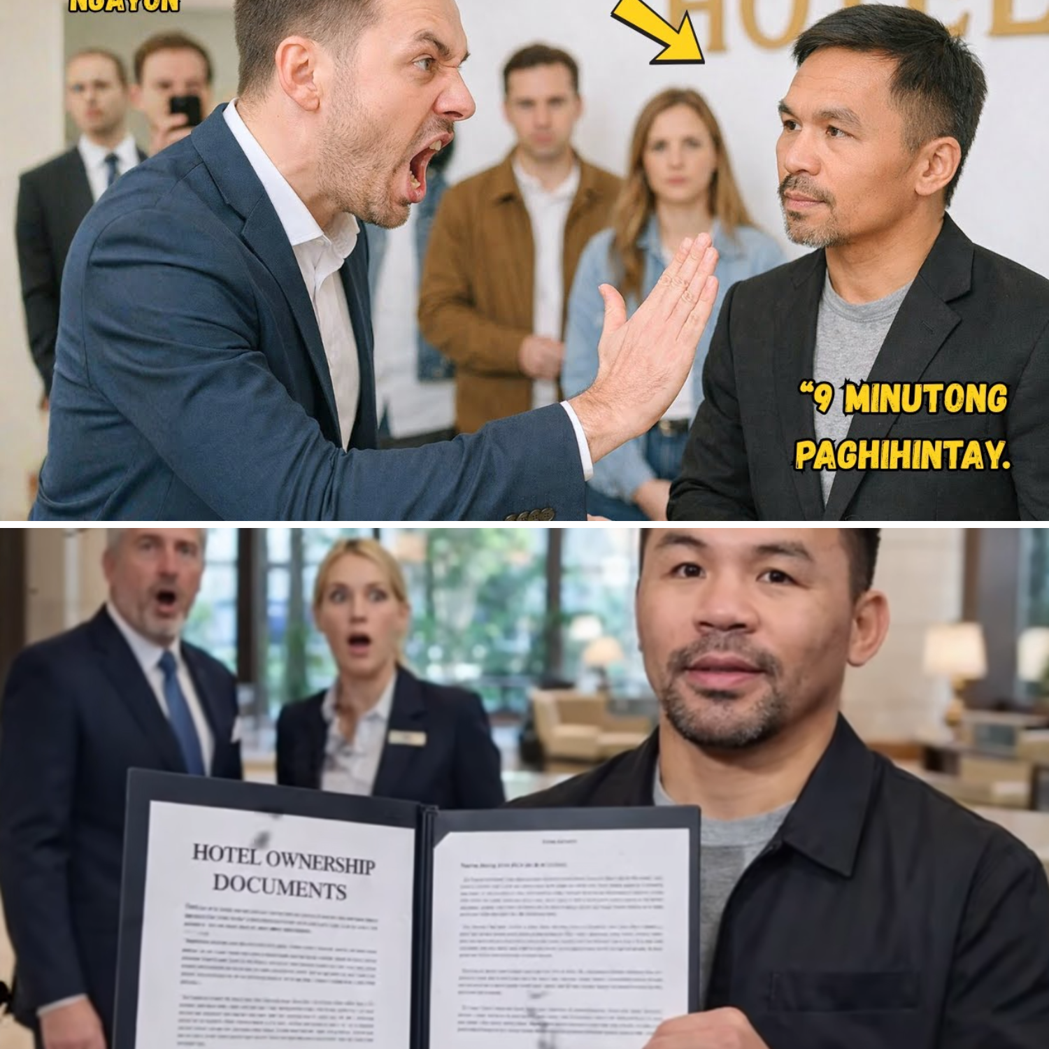 Sa isang araw ng Sabado, habang ang kanyang sarili niyang hotel ay punong-puno ng mga bisita at kliyente mula sa iba’t ibang dako ng mundo, dumating si Manny Pacquiao sa lobby. Walang anumang abiso, basta dumaan siya sa main entrance na may kasamang ilang tauhan. Ang kanyang mga tauhan, bagamat sanay sa mga ganitong eksena, ay nagmamadaling ihanda ang kanyang silid at mga pangangailangan. Pero walang makakapaghanda sa kung anong mangyayari sa susunod na 9 minuto.