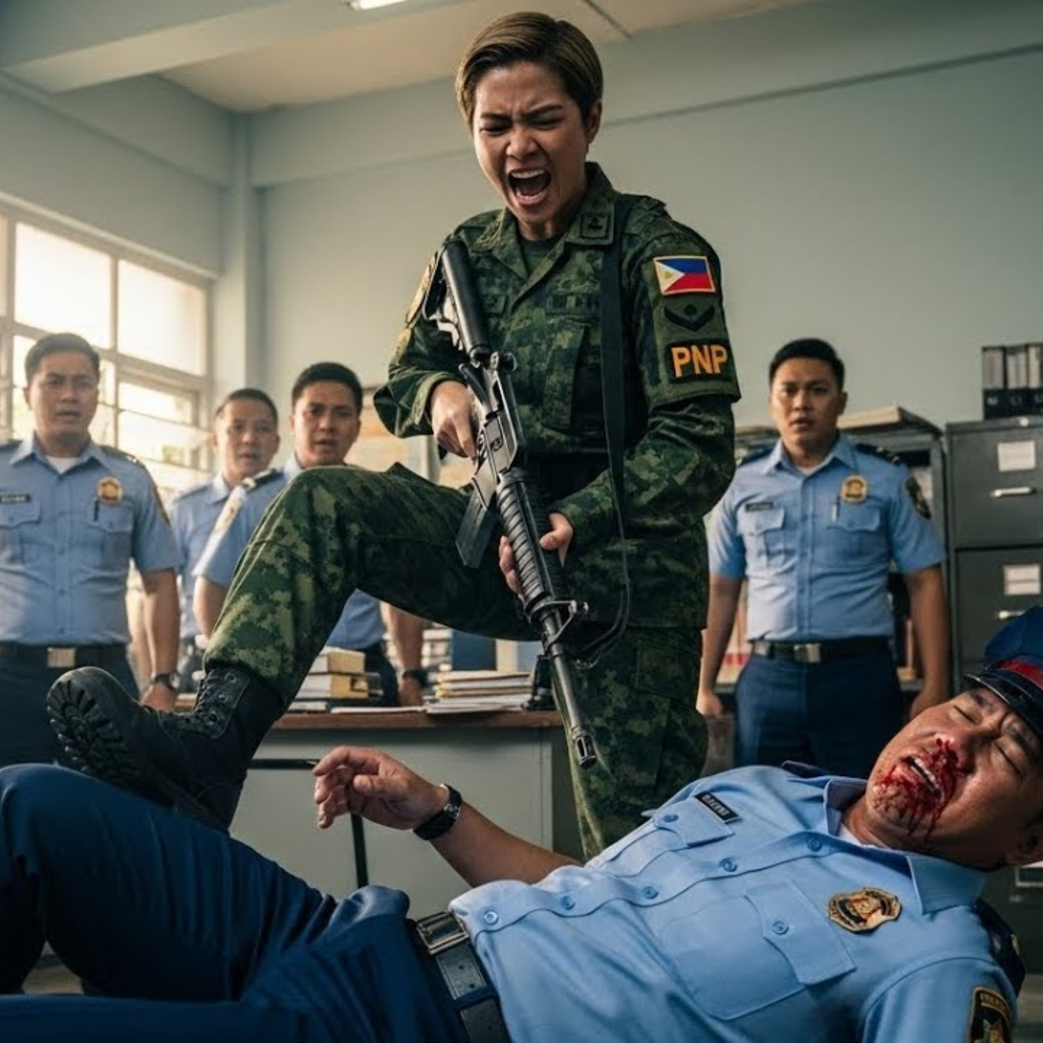 Nang makatanggap ng tawag ang ating Female Commando, hindi siya tumawag sa abogado. Hindi rin siya dumaan sa mabagal na proseso ng pormal na reklamo. Sa halip, bitbit ang kanyang disiplina mula sa bundok at ang galit na sapat para pasabugin ang buong istasyon, siya mismo ang pumasok sa loob ng presinto. Ang mga pulis na noon ay nagtatawanan pa habang naghihintay ng “grasya” ay biglang natahimik nang bumukas ang pinto at pumasok ang isang babaeng ang bawat hakbang ay tila tunog ng paparating na hatol. Hindi siya sumigaw nang walang dahilan; bawat mura at bawat salitang binitawan niya ay tila bala na tumatagos sa kapal ng mukha ng mga pulis na ito.