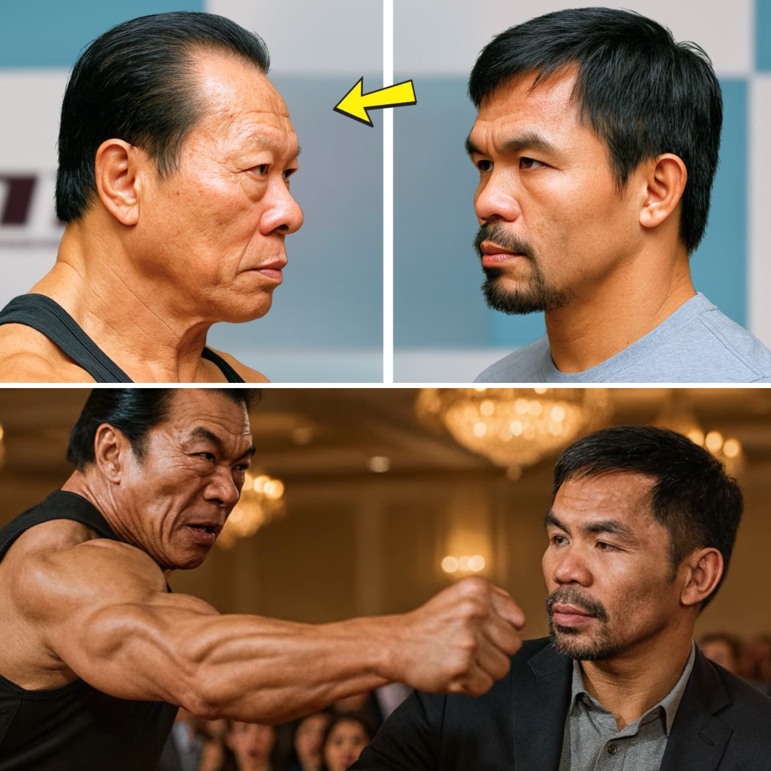 Sa harap ng maraming tao, muling hinamon ni Yeung si Pacquiao—ngayong mas malinaw, mas diretso, at mas may diin. Ang crowd ay natahimik. Ang simpleng pagtitipon ay biglang naging isang eksena ng tensyon. Lahat ay naghihintay kung ano ang susunod na mangyayari.