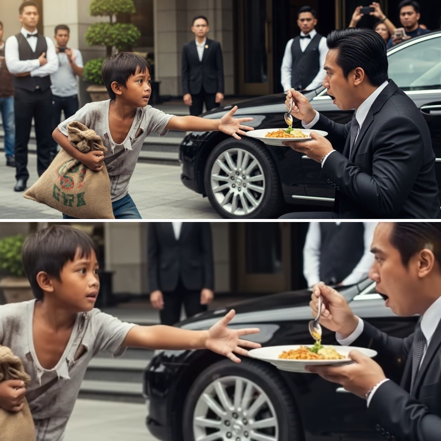 Sa isang bayan kung saan ang yaman at kahirapan ay magkasalungat na realidad, isang insidente ang nagbigay-diin sa tunay na halaga ng buhay, pagkatao, at pagkakaisa. Isang batang walang bahay ang sumigaw ng “Huwag mong kainin yan!” sa harap ng isang bilyonaryo na naglalakad sa isang mamahaling restaurant. Ang mga salitang iyon ay nagbigay-diin sa isang kwento na puno ng aral, pag-asa, at pagkilala sa mga tao sa paligid natin—anuman ang kanilang estado sa buhay. Ang kwentong ito ay hindi lamang tungkol sa isang bata at isang bilyonaryo, kundi tungkol sa mga aral ng buhay na nagbubukas ng ating mga mata sa katotohanan ng mundo.