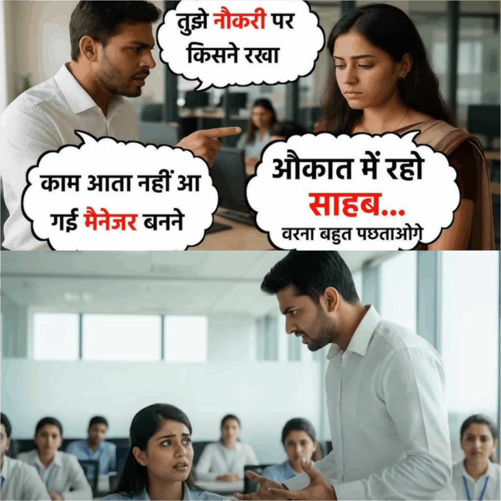 पूरे ऑफिस में सन्नाटा छा गया। सबकी निगाहें संध्या पर थीं। उसने कुछ कहने की कोशिश की, “सर, प्लीज एक बार…” लेकिन आरव ने और कड़े लहजे में कहा, “मुझे बहाने नहीं सुनने, मुझे रिजल्ट चाहिए। अगर आपसे इतना भी नहीं होता तो शायद अब आपको आराम कर लेना चाहिए।” उसकी बात तीर की तरह लगी। संध्या के हाथ कांप गए। कंप्यूटर स्क्रीन धुंधली लगने लगी। किसी ने उसकी ओर सहानुभूति से देखा, मगर कोई कुछ बोला नहीं। वह बस एक पल के लिए चुप रही और धीरे से सिर झुका लिया। आरव पलट गया और अपने केबिन में चला गया। माहौल इतना भारी था कि लोगों ने अपने कीबोर्ड की टाइपिंग तक धीमी कर दी।